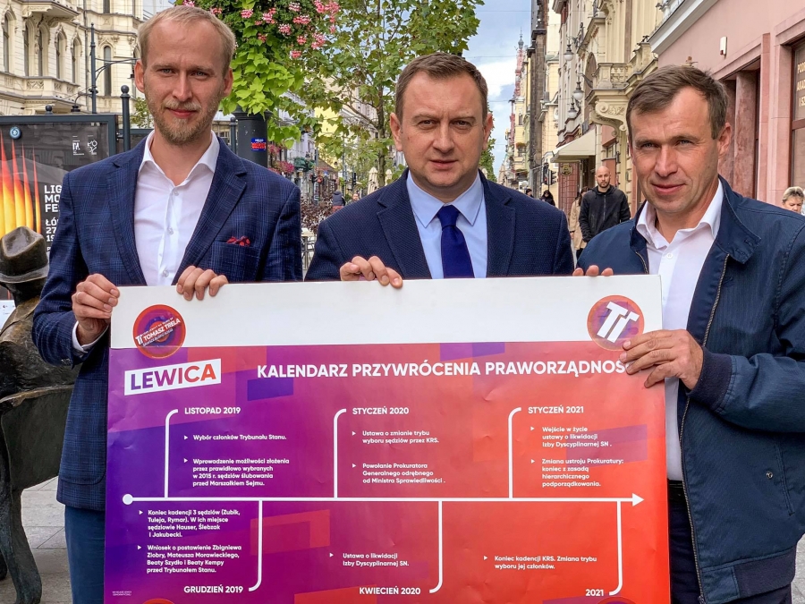 Jedną z pierwszych decyzji, jeżeli chodzi o kwestie konstytucyjne, będzie wniosek Lewicy o Trybunał Stanu dla premiera Morawieckiego, dla pani premier Szydło, dla pana ministra Ziobry i pani minister Kempy - podkreślił lider Lewicy w okręgu łódzkim Tomasz Trela.